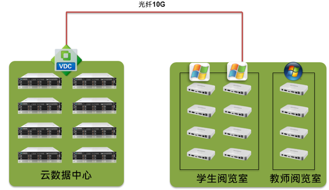 針對(duì)用(yòng)戶現(xiàn)有(yǒu)的(de)問(wèβn)題和(hé)需求,深信服雲桌面為(wèi)用(yòng)戶提供了(le)高(gāo)性價比和(hé)高(gāo)附加值的(de)解決方案。整體(tǐ)方案采用(yò ng)深信服桌面雲一(yī)體(tǐ)機(jī)VDS-G-H550,深信服桌面雲系統aDesk、将傳統PC應用(yòng)轉↕化(huà)成虛拟機(jī)上(shàng),托管在數(shù)據中心。客戶使用(yòng)節能(néng)、無噪音(yīn)、小(xiǎo)巧的(de)超雲雲終端設備替≠代傳統PC,打造高(gāo)效的(de)數(shù)字化(huà)校(xiào)園。
