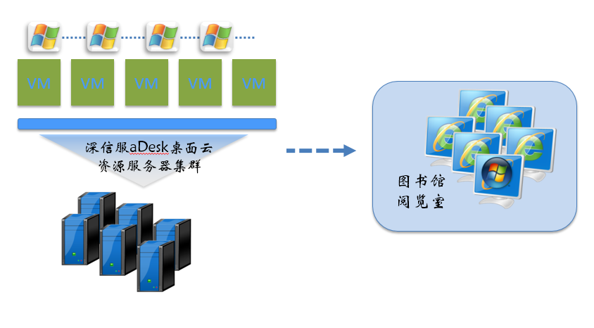 針對(duì)用(yòng)戶現(xiàn)有(yǒu)的(de)問(wèβn)題和(hé)需求,深信服雲桌面為(wèi)用(yòng)戶提供了(le)高(gāo)性價比和(hé)高(gāo)附加值的(de)解決方案。整體(tǐ)方案采用(yò ng)深信服桌面雲一(yī)體(tǐ)機(jī)VDS-G-H550,深信服桌面雲系統aDesk、将傳統PC應用(yòng)轉↕化(huà)成虛拟機(jī)上(shàng),托管在數(shù)據中心。客戶使用(yòng)節能(néng)、無噪音(yīn)、小(xiǎo)巧的(de)超雲雲終端設備替≠代傳統PC,打造高(gāo)效的(de)數(shù)字化(huà)校(xiào)園。